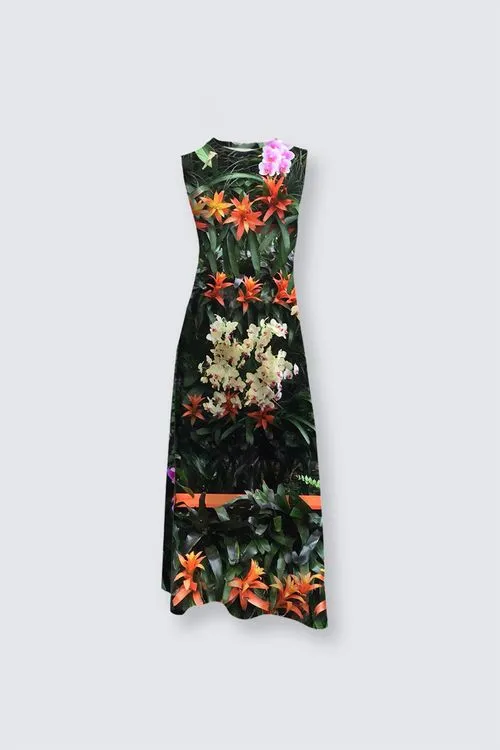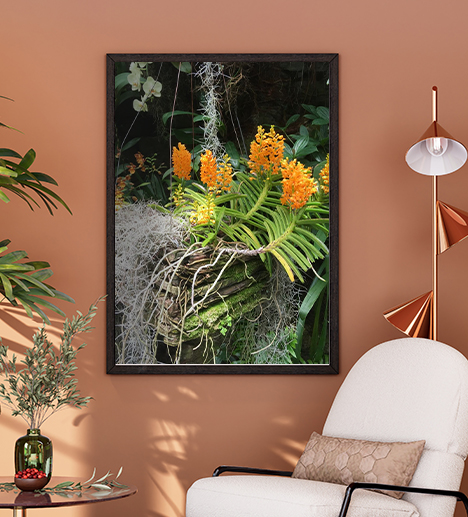 This photograph taken at Selby Gardens in Sarasota, Florida, is a stunning celebration of floral beauty and vibrant colors. The image captures a picturesque arrangement of flowers that creates a visually dynamic and enchanting scene.