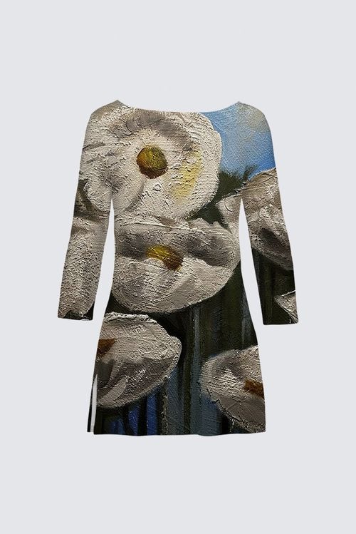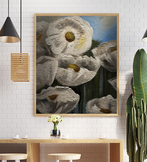 This photograph captures the white flowers of a mural while strolling through the town of Cologne, Germany, near the Rhine River. It features a beautiful depiction of white flowers, with their petals rendered in a textured style.